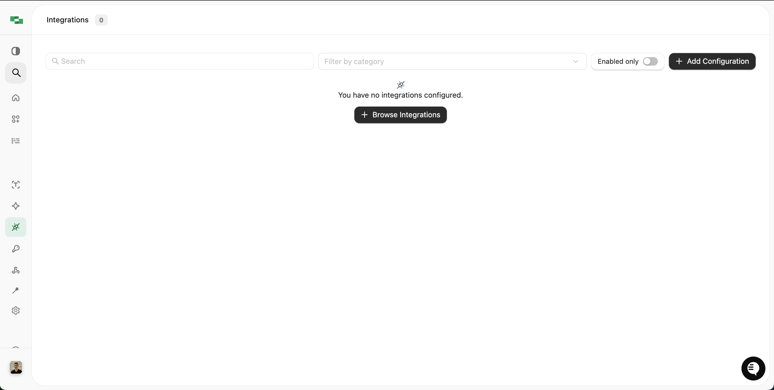 To configure your first connector, navigate to the Auth Configs section and click on the+ button.